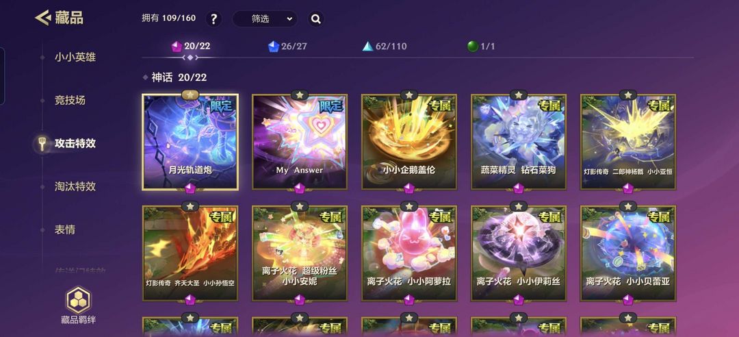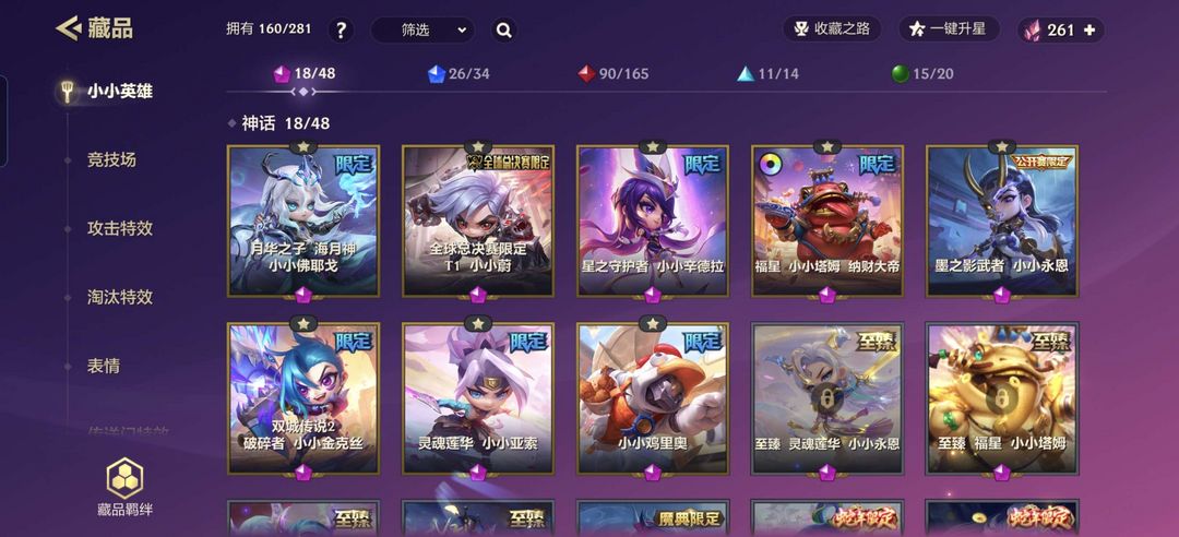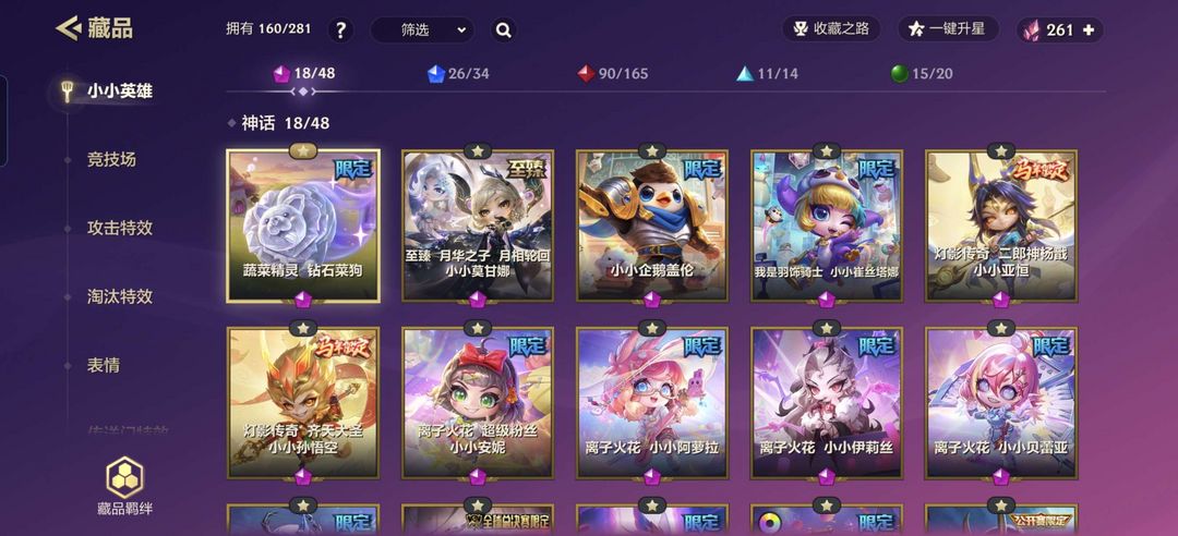 1个至臻小小英雄 18个神话级小小英雄 26个英雄级小小英雄 3个英雄级棋盘