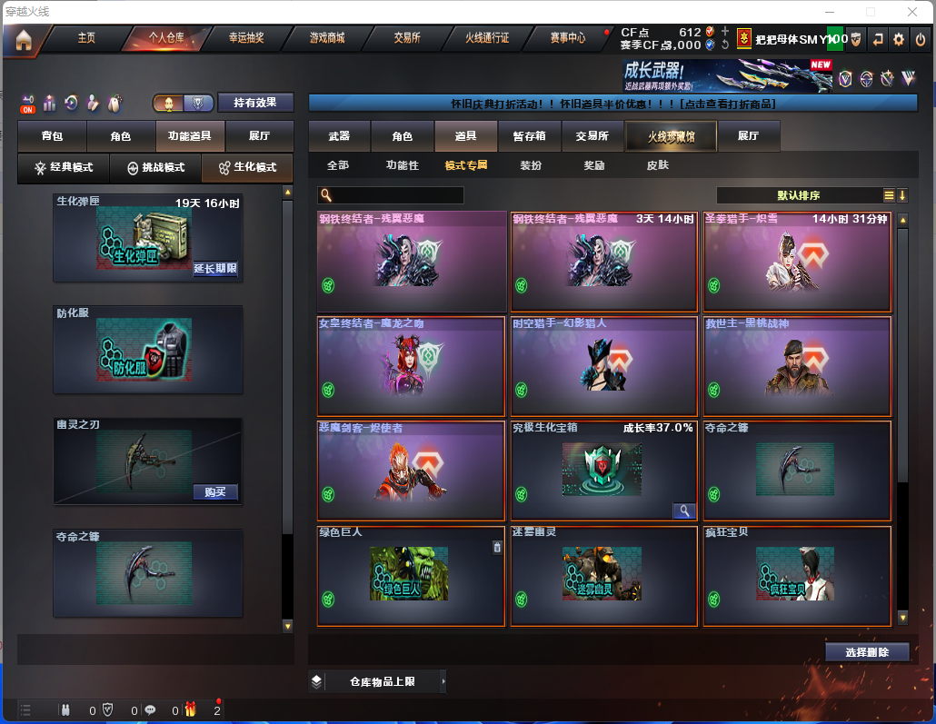 隼✨四防生化背包✨生化6盘6烈✨炼狱秦师小钢✨斯泰尔蝴蝶✨时空猎手✨幻神✨满榴弹不退包✨无炽芒蝶刃