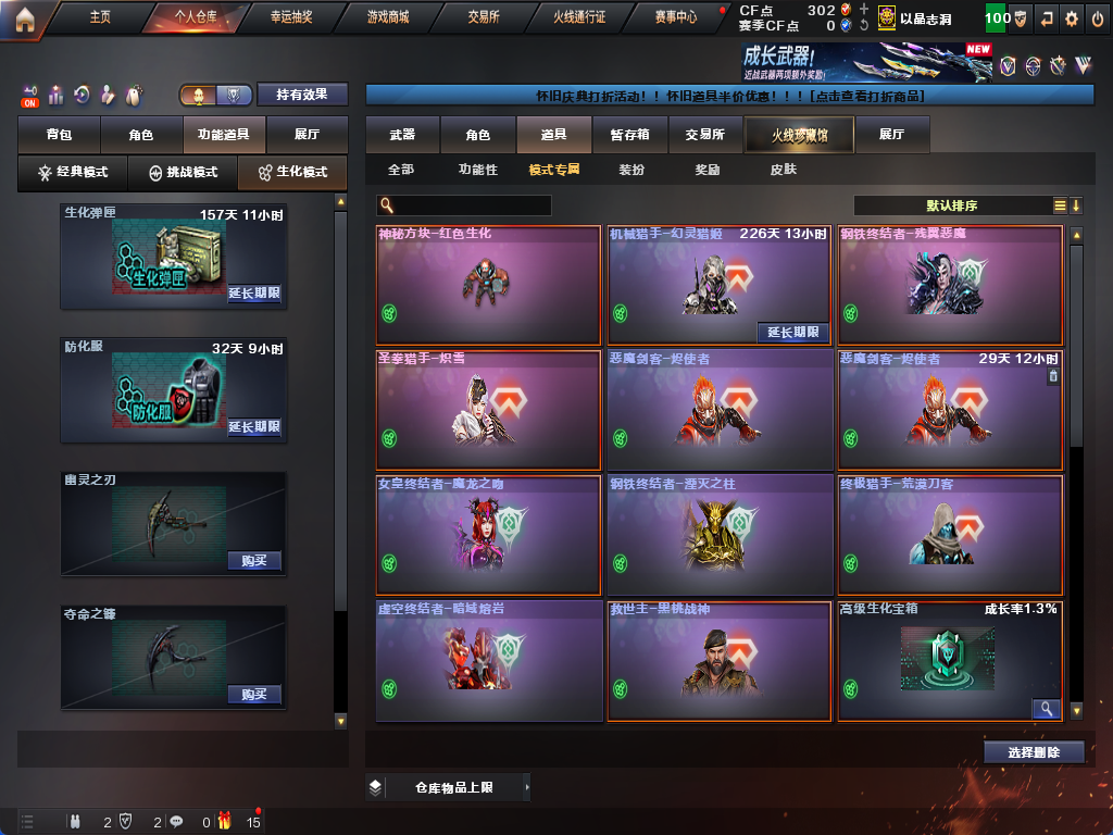 生化炽芒蝶刃6盘6烈✨15个生化皮肤✨清道夫斯泰尔蝴蝶毒蜂✨四防生化背包✨炼狱幻神满榴弹不退包减速雷