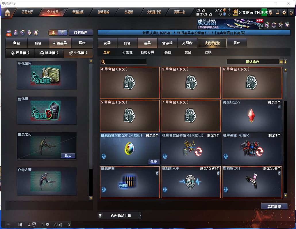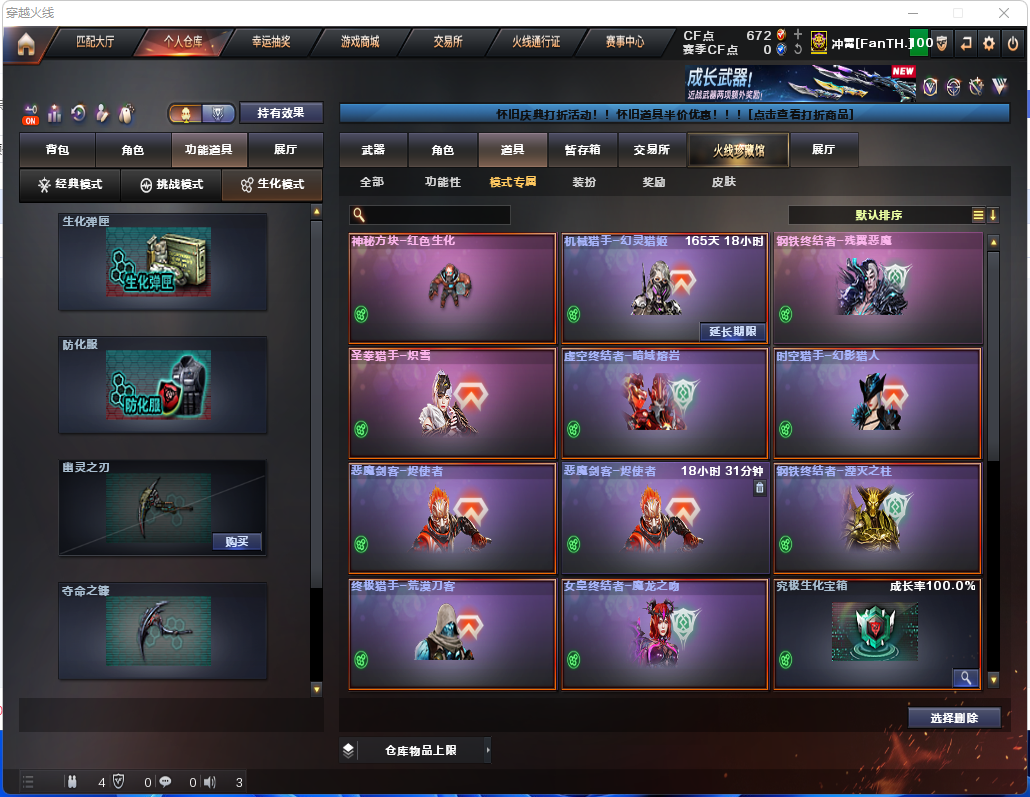生化炽芒蝶刃♉满配八面凌龙♉时空猎手♉12个生化皮肤♉幻神可排位传说破晓♉满榴弹不退包♉无6盘6烈 ---2026年1月17日03:45:06-改