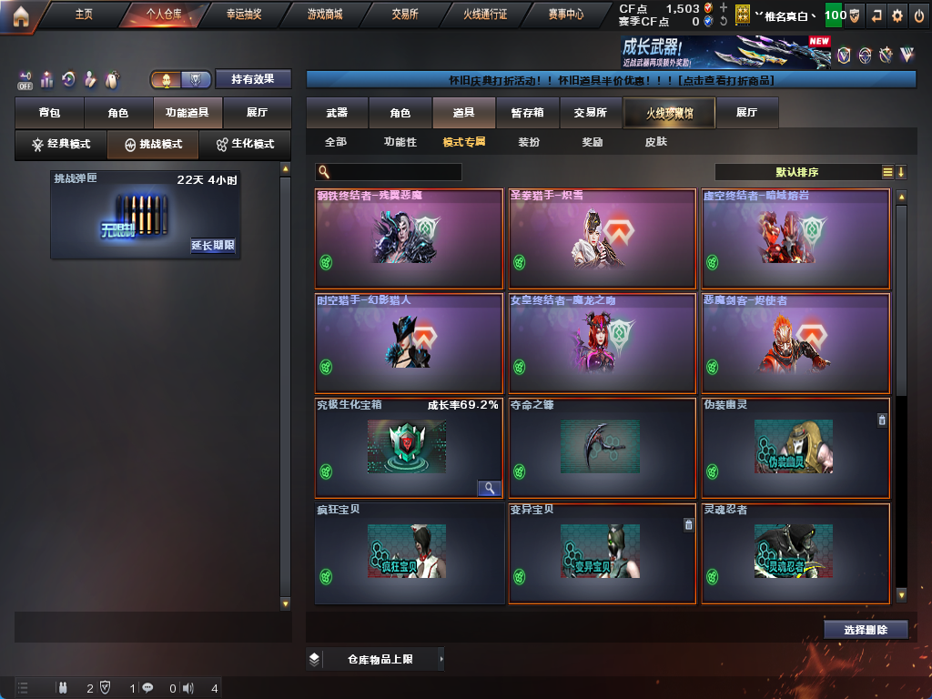 生化炽芒蝶刃♉满配八面凌龙♉时空猎手♉四防生化背包♉星神可排位♉满榴弹减速雷不退包全鬼♉无6盘6烈