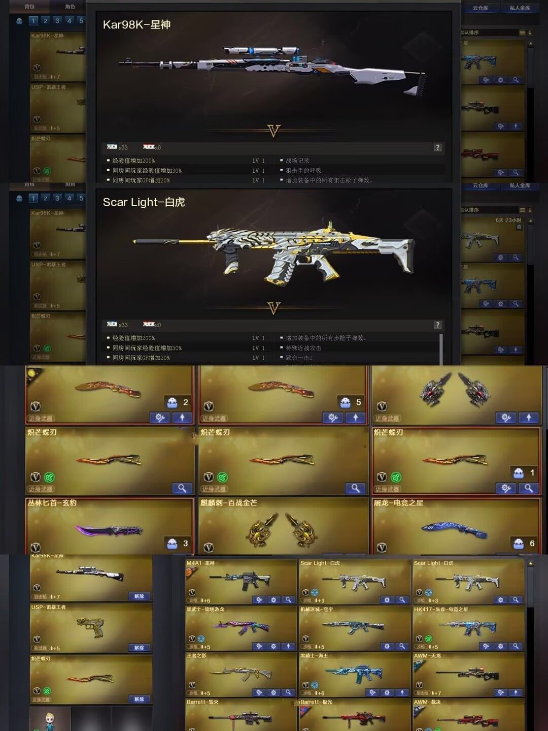 南部/三把炽芒蝶刃/生化4防司雨影豹/6盘6烈炼狱毒蜂斯太尔玄豹/星神裁决白虎USP雷暴 /满弹夹