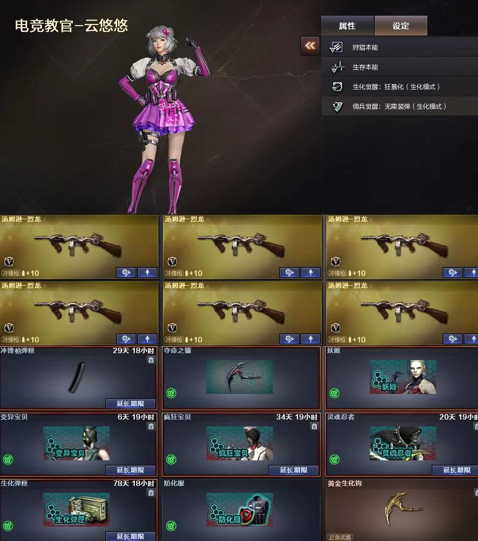 【装备道具】:QBZ-冠军之薇★Knife-冠军之刃★柯尔特-双冠军之特★宠儿幻神MVP★周瑜幻神皮肤★幻神音效卡★冠军之薇冠军之刃冠军之特★传说艾莉莎★序列传说光耀(3442)★传说圣灵★炽芒蝶刃蝴蝶刀★幻神竞技荣光云悠悠★觉醒王者幻神★98K-星神★荣耀世冠套★荣耀世冠火麒麟★荣耀世冠雷神★荣耀世冠柯尔特★荣耀世冠龙啸★M200竞技荣光★柯尔特-竞技荣光★擎天竞技荣光★宠儿雷神★绿豆毁灭★火麒麟冠军之心★雷神冠军之魄★黑骑士冠军之势★毁灭-冠军之怒★华夏之心★火麒麟传奇EVEN★雷神传奇N9★黑骑士伏羲★虎将雷神★AG世冠套★M4A1幻灵★SCAR-白虎★M4堕天神★白虎电玩★USP雷暴★COP堕天神★COP幻灵★影豹幻灵套★王者玲珑小乔★迷迭香★王者玲珑★幻灵之锋★6烈龙炼狱★★四周年套★荣耀之证卡牌★变异宝贝死亡对讲机不退包★佣兵觉醒无需换弹手斧镜减速雷★捕食者之眼查看血量★