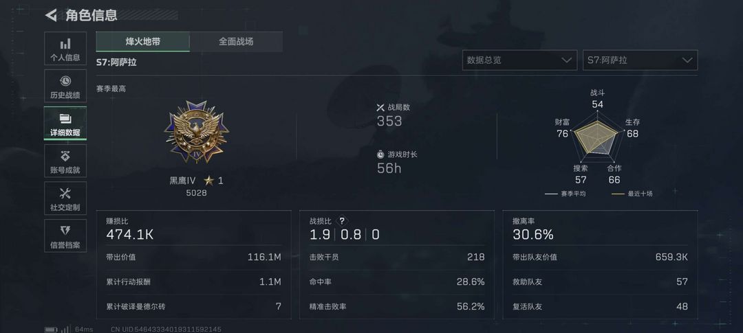千万哈夫币 全新唐人体力号冻结看描述❤可绝密航天⭐低KD虐菜护航首选⭐带妹护航号⭐可排位