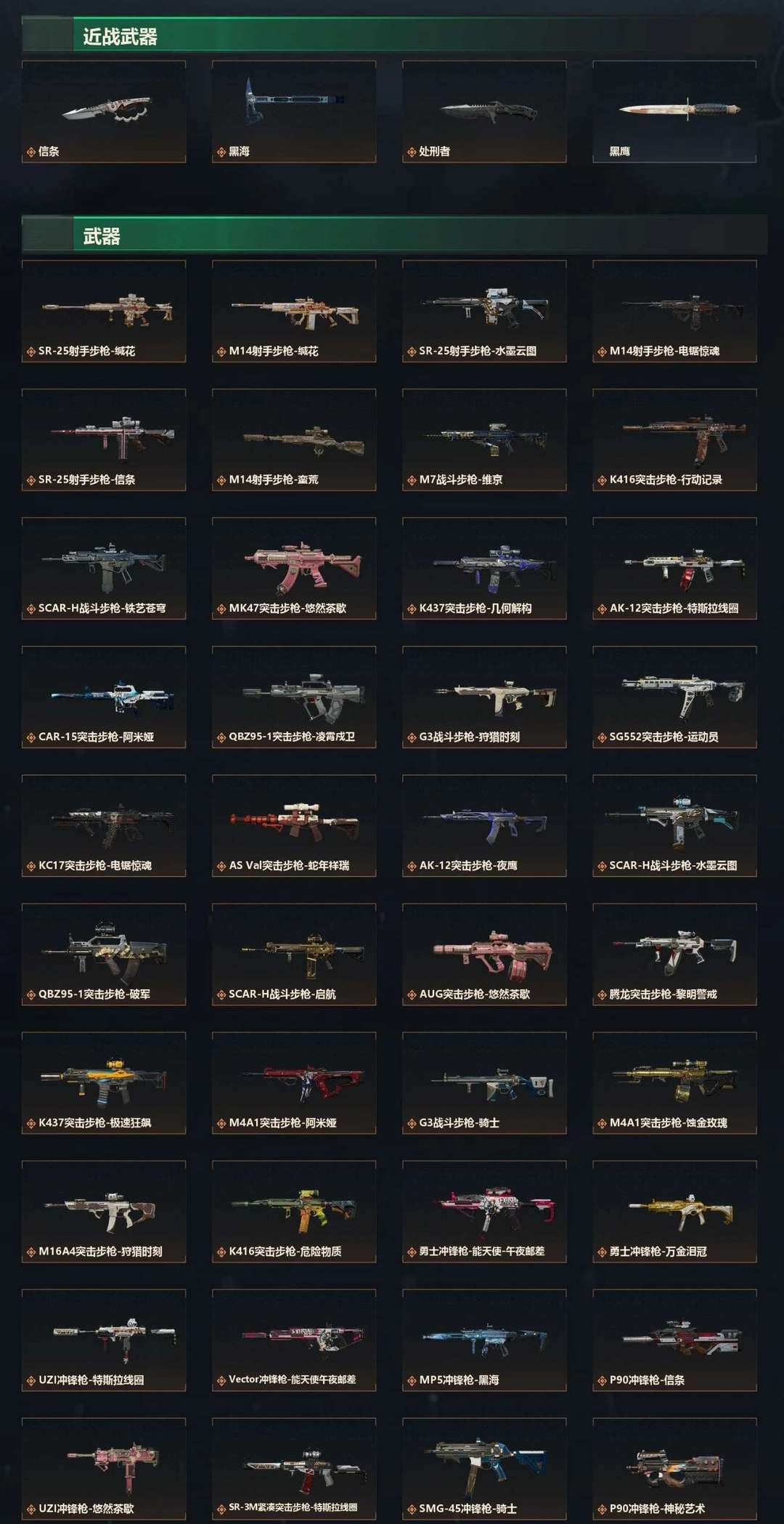 皮肤号 威龙凌霄戊卫5红皮3刀皮60金皮 天际线 蚀金玫瑰 铁面判官 信条全套 黑海全套