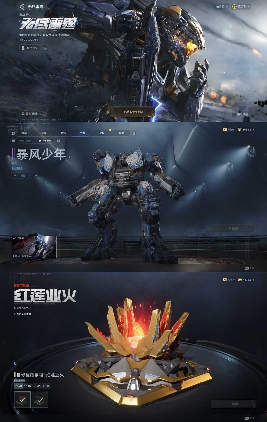 商城清空,无尽雷霆,黑暗天使,血色蔷薇,风暴之龙深渊狂潮,月陨之誓,钢铁轰鸣鹰击长空,能源之影奢金