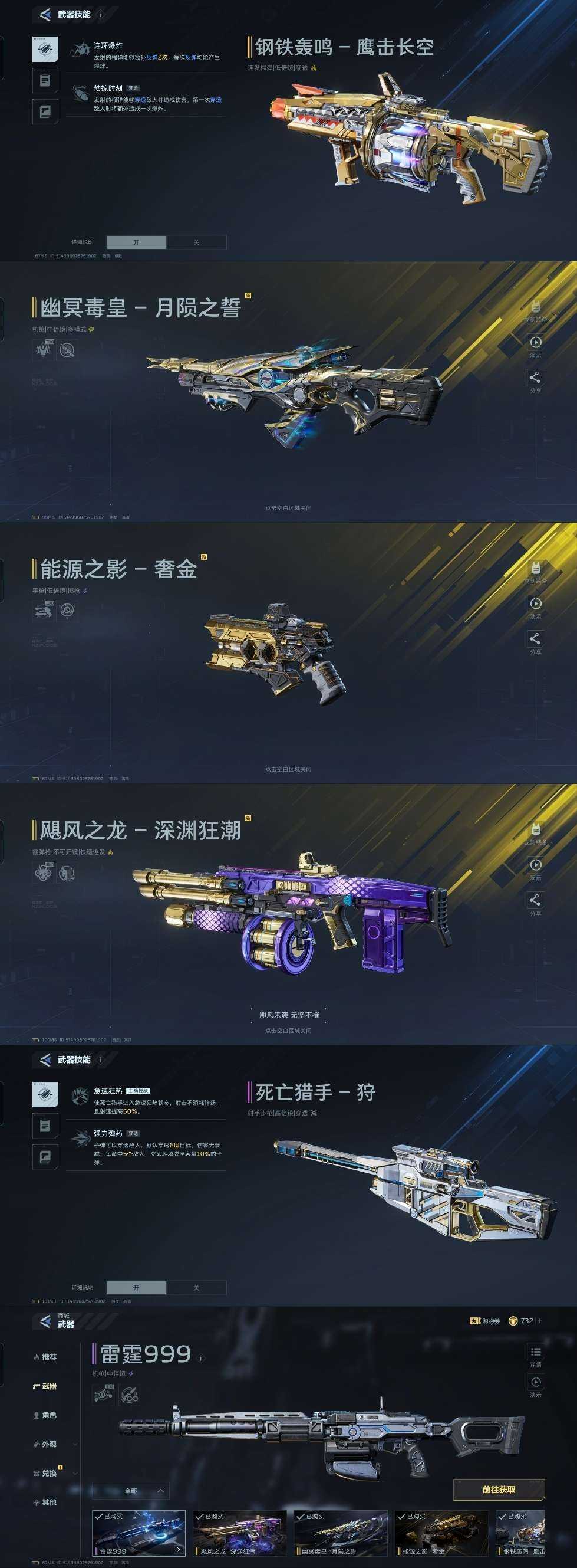 【武器清空】安琪儿血色蔷薇钢铁轰鸣鹰击长空幽冥毒皇月陨之誓能源之影奢金飓风之龙深渊狂潮死亡猎手狩雷霆