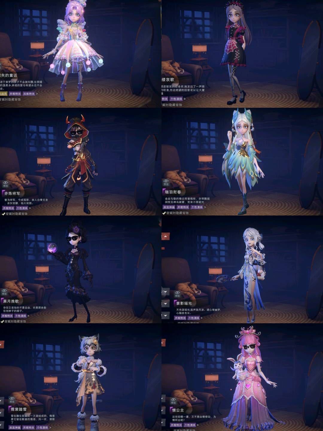 (有铲币,可卖物资)1金7紫,s2-s3,赤练将军,黑月挽歌,遗失的童话,霓裳踏雪瑞羽衔春素影瑶光