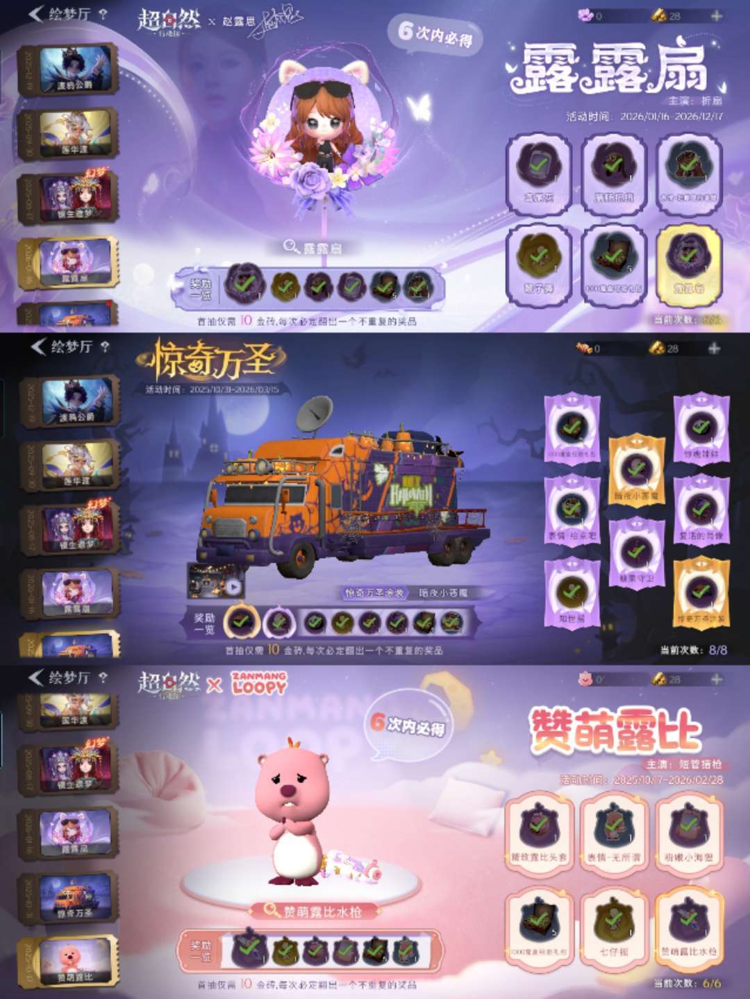 主播号3W粉丝1红莲花渡+兔宝+晶澜灵翼卡皮小狗蛇+渡鸦+万圣+限定露露折扇 其他详细看图