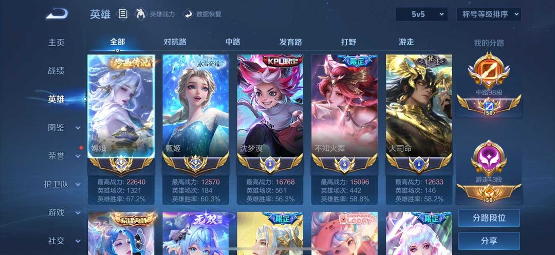 无双贵族V10✨多典藏传说皮肤⭐98段中路⭐2.2w战力大国服嫦娥⭐多小国服极品细节女号⭐