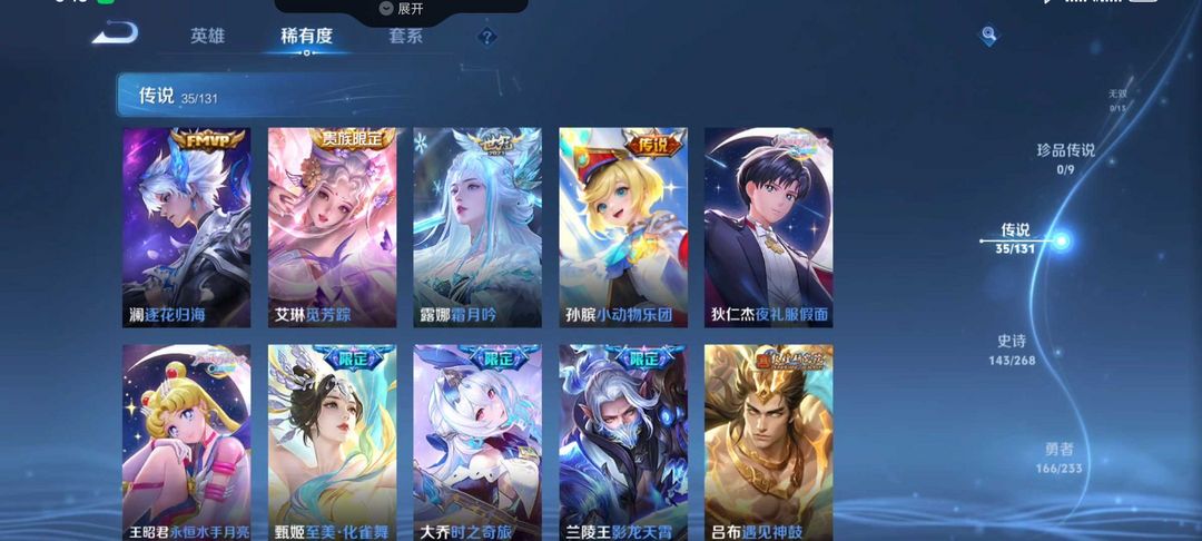 本游戏账号: V10用户,基础段位:无双王者,英雄多,皮肤多。铭文:21及以上,典藏皮肤11个,感受典藏皮肤带来的优质体验快感,FMVP皮肤11个,尽情享受FMVP皮肤带来的主角光环, 私人所属英雄皮肤有:小乔 天鹅之梦||芈月 大秦宣太后||孙尚香 杀手不太冷||孙悟空 全息碎影||武则天 倪克斯神谕||李白 鸣剑·曳影||诸葛亮 星域神启||花木兰 九霄神辉||貂蝉 幻阙歌||瑶 拾光映像||伽罗 最初的交响,等等
