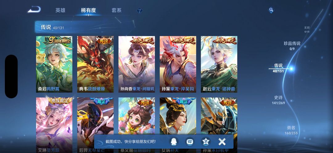 本游戏账号: V10荣耀贵族用户,基础段位:最强王者,英雄多,皮肤多。典藏皮肤6个,感受典藏皮肤带来的优质体验快感,FMVP皮肤8个,尽情享受FMVP皮肤带来的主角光环, 私人所属英雄皮肤有:花木兰 九霄神辉||小乔 天鹅之梦||貂蝉 幻阙歌||瑶 拾光映像||鲁班七号 星空梦想||武则天 倪克斯神谕马可波罗 怪盗基德||桑启 鸣野蒿||露娜 启示之音||伽罗 炽翼辉光||关羽 武圣||铠 冥王哈迪斯||云中君 群星魔术团||娜可露露 前尘镜||张良 黄金白羊座||墨子 黄金天蝎座||亚连 落雪白狼||李元芳 飞鸢探春||妲己 青丘·九尾||梦奇 胖达荣荣||达摩 黄金狮子座||后羿 黄金射手座||周瑜 音你心动||裴擒虎 寅虎·赤拳||百里守约 碎云||孙策 乘龙·淬吴钩||赵云 乘龙·铭钟鼎||孙尚香 乘龙·问璇玑||马超 琥珀纪元||女娲 补天||艾琳 觅芳踪||露娜 霜月吟||孙膑 小动物乐团||狄仁杰 夜礼服假面||王昭君 永恒水手月亮||王昭君 星穹之声||公孙离 祈