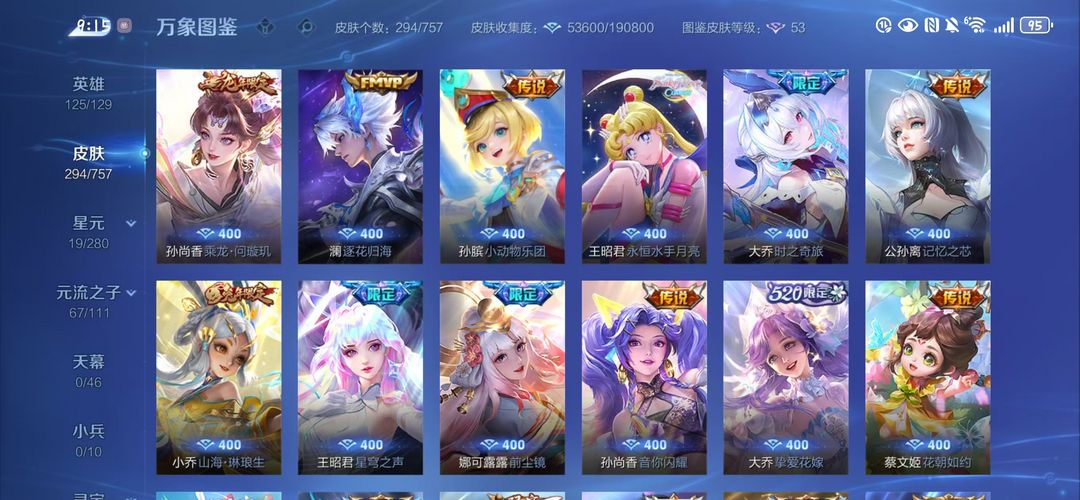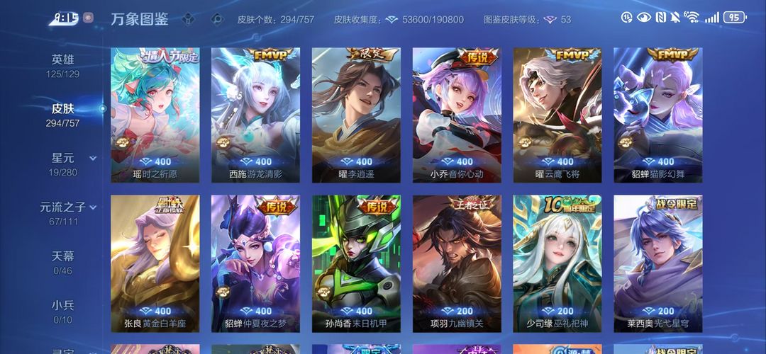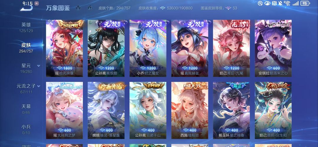 【v8 294皮】 超绝仙女号 瑶全皮 妲己九尾 小乔时之魔女 离恨烟 金色仲夏夜李逍遥