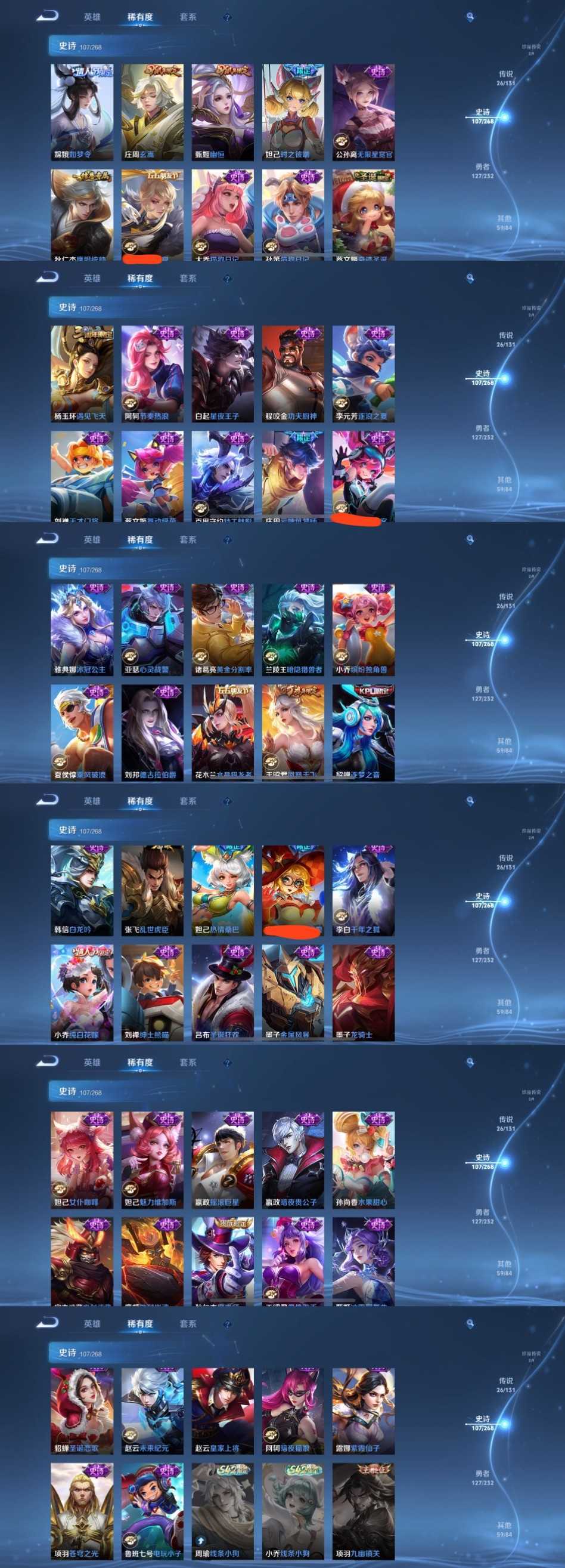 时间到了还登录白玩或者顶号全部改密拉黑处理永不解除,顶号机器会秒禁玩改密,顶号不仅拉黑还没得玩,赚三两块不容易,请理解谢谢。 ❤❤❤❤❤❤❤❤❤❤❤❤❤❤❤❤❤❤❤ 请勿开挂,挂机,送头,骂人,撤单后游戏等如有违规永久拉黑永不解除。 重置二级密码不要费劲了,号主每天都会上号查看,多行不义必自毙,人在做天在看,多做好事多自律,少做缺德事。 该号英雄128个皮肤326个,典藏2个,无双3个,珍品传说2个,星传说3个,传说26个,史诗107个,祝您游戏愉快~