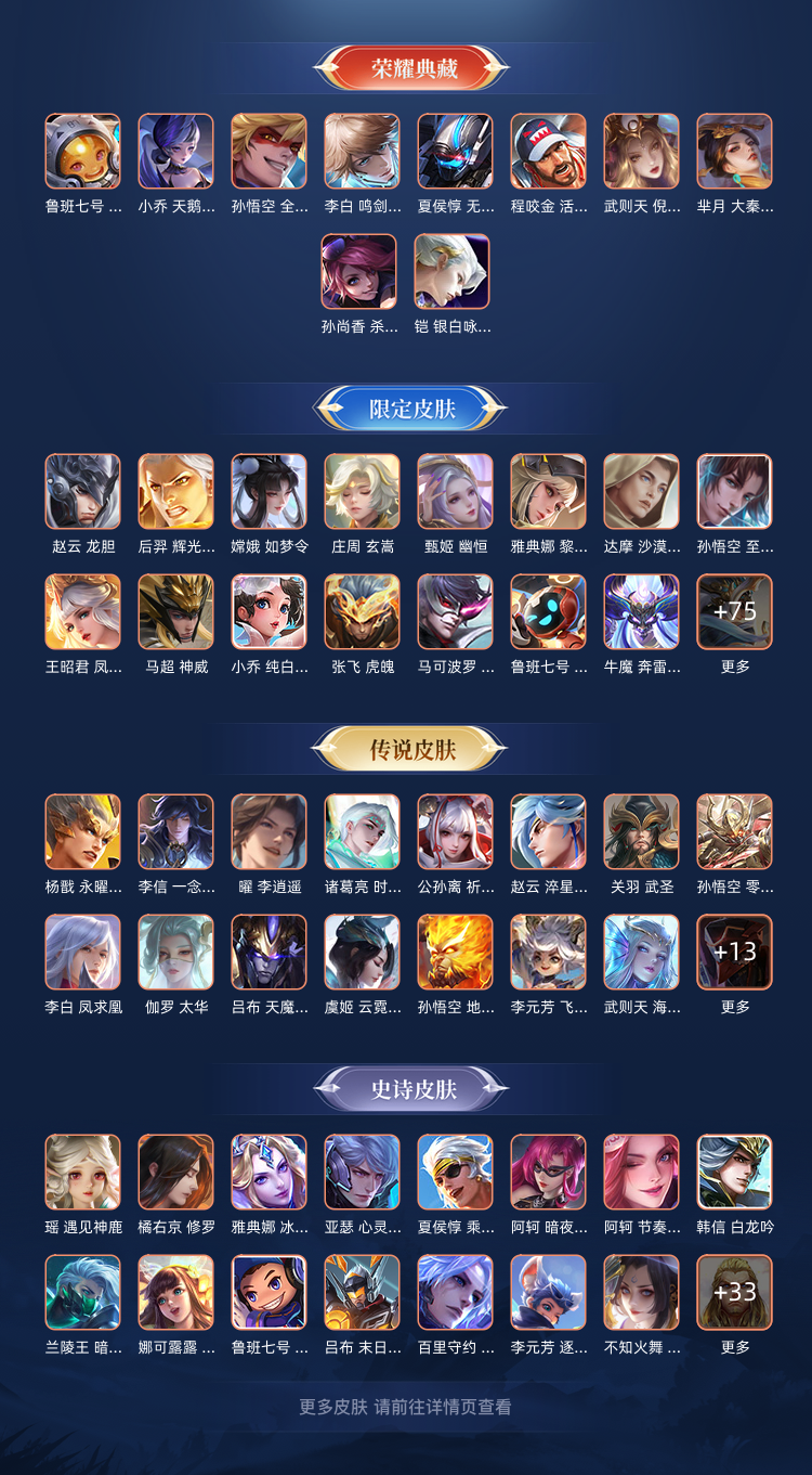 本游戏账号: ,基础段位:至尊星耀IV,英雄多,皮肤多。典藏皮肤9个,感受典藏皮肤带来的优质体验快感,FMVP皮肤7个,尽情享受FMVP皮肤带来的主角光环, 私人所属英雄皮肤有:孙悟空 全息碎影||孙尚香 杀手不太冷||芈月 大秦宣太后||程咬金 活力突击||小乔 天鹅之梦||李白 鸣剑·曳影||武则天 倪克斯神谕||鲁班七号 星空梦想||夏侯惇 无限飓风号,等等