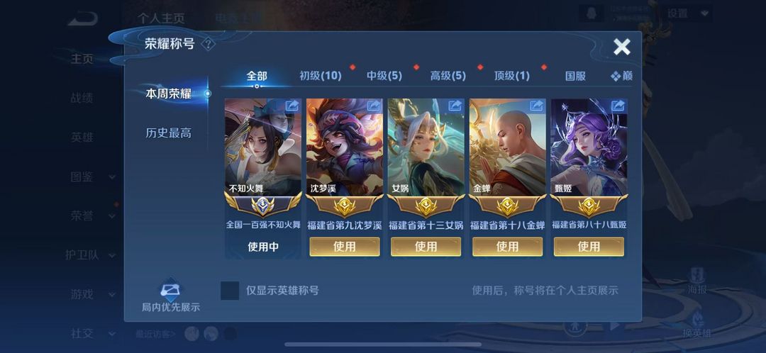 小国标火舞在榜⭐4省标金蝉沈梦溪女娲甄姬⭐巅峰万强闪电框⭐可排位/禁巅峰/禁挂机