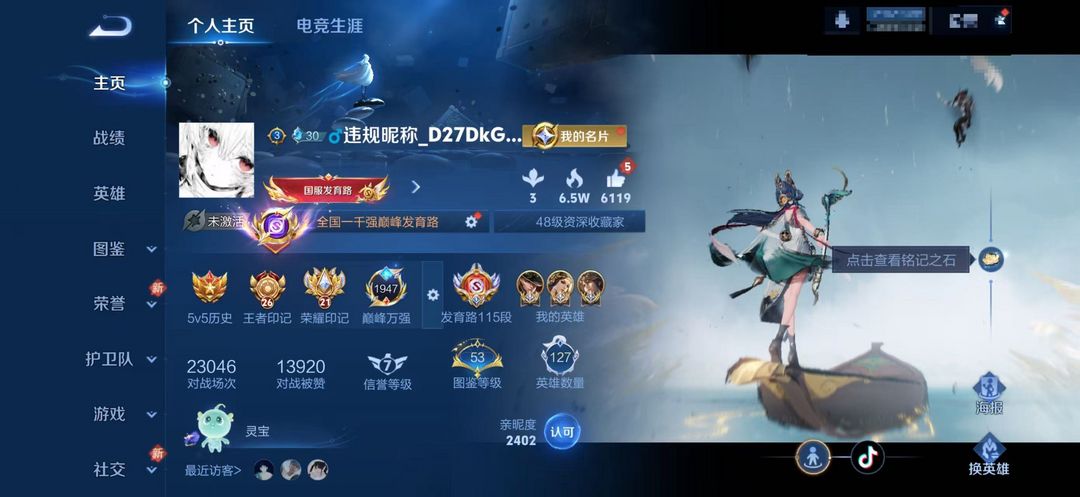 巅峰千强1034闪电框⭐️小国公孙离在榜50强⭐️115段发育路⭐️巅峰1947⭐️可排位禁巅峰