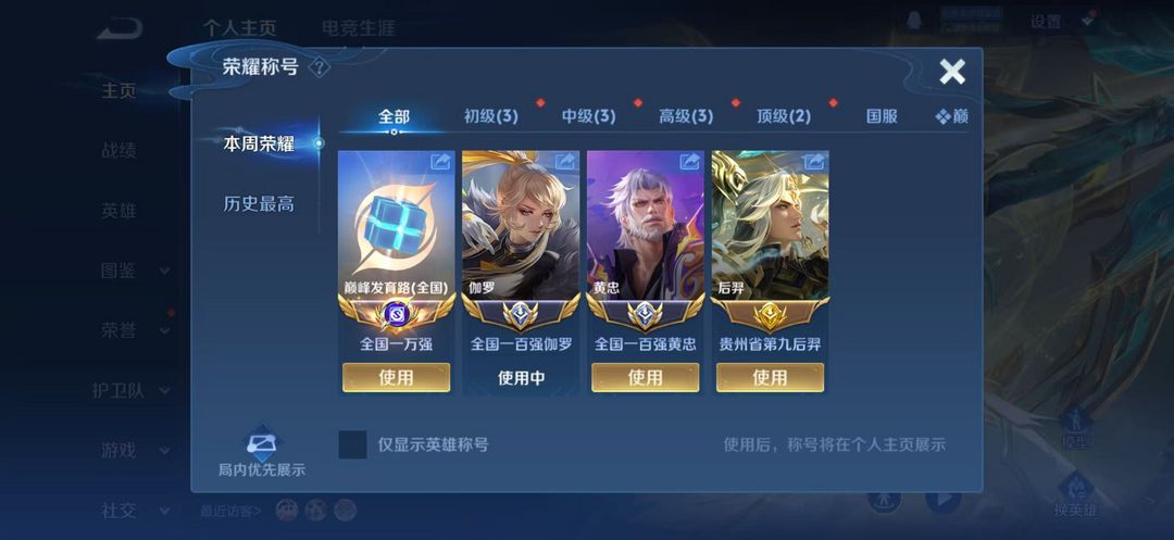 双小国标黄忠伽罗在榜⭐省标后羿⭐巅峰⭐可排位/禁巅峰