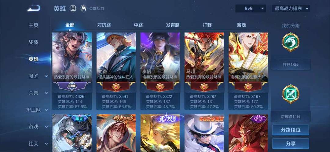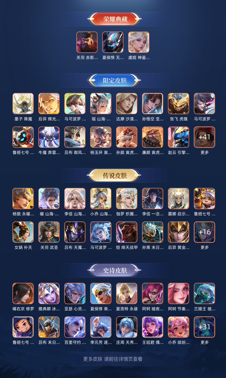 王者 无双V10 英雄127个 445个皮肤 80个传说 16个珍品 8个无双 三个荣耀典藏