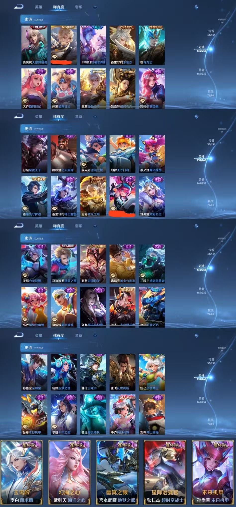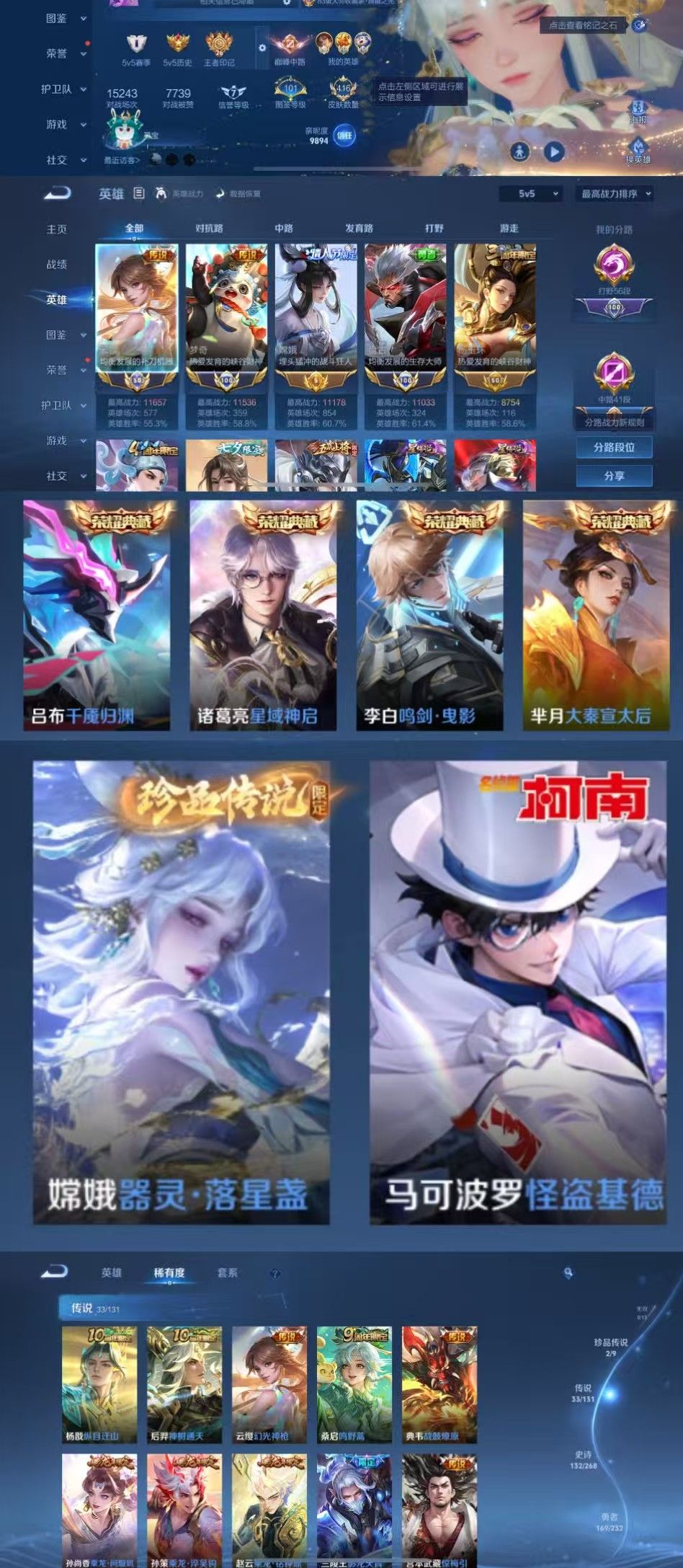 4典藏2珍品33传说✨国服云缨国服梦琪✨国服盘古万战嫦娥✨千魇归渊全十周年✨落星盏怪盗基德✨全龙年
