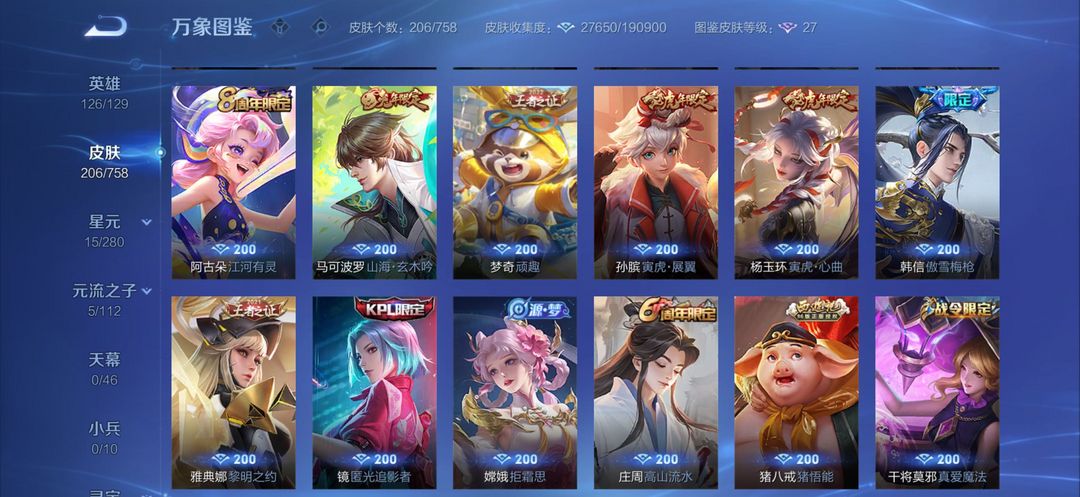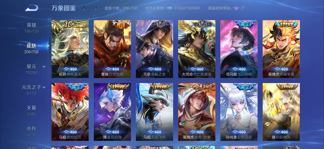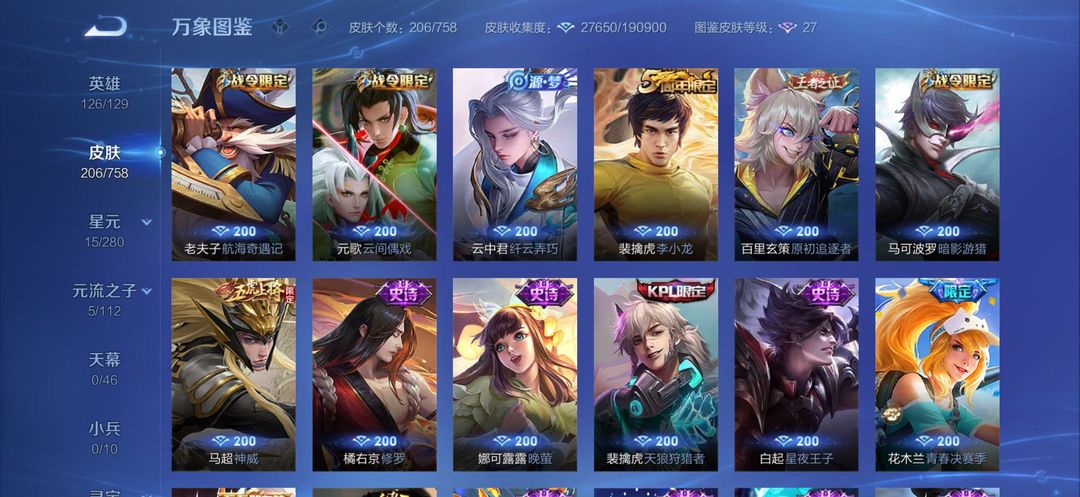 裴擒虎除梅西都有,马超琥珀、无双,百里玄策白虎,澜FMVP,38打野可排位,不禁言
