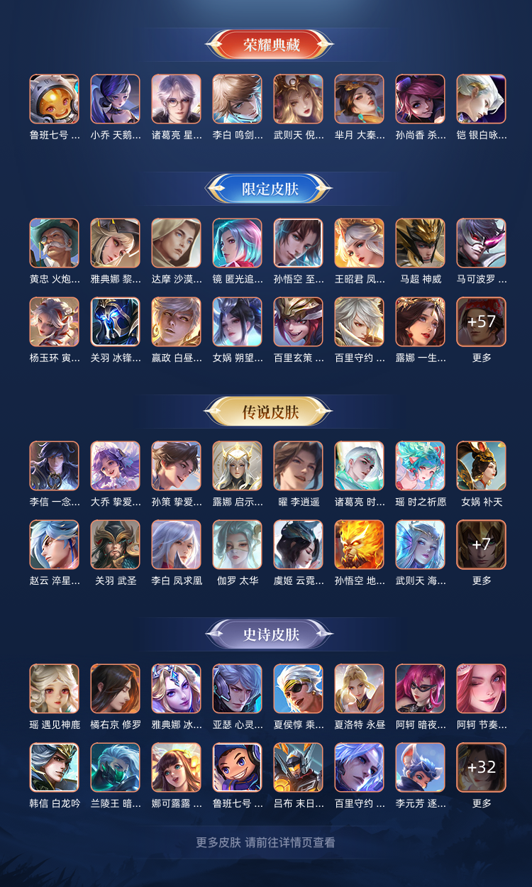 本游戏账号: V10用户,基础段位:永恒钻石II,英雄多,皮肤多。典藏皮肤7个,感受典藏皮肤带来的优质体验快感,FMVP皮肤7个,尽情享受FMVP皮肤带来的主角光环, 私人所属英雄皮肤有:诸葛亮 星域神启||孙尚香 杀手不太冷||鲁班七号 星空梦想||芈月 大秦宣太后||李白 鸣剑·曳影||武则天 倪克斯神谕||小乔 天鹅之梦诸葛亮 时雨天司||诸葛亮 武陵仙君||大乔 挚爱花嫁||孙尚香 异界灵契||孙尚香 末日机甲||孙策 挚爱之约||李白 凤求凰||武则天 海洋之心||关羽 武圣||貂蝉 遇见胡旋||貂蝉 仲夏夜之梦||露娜 启示之音||王昭君 乞巧织情||艾琳 觅芳踪||孙悟空 地狱火||后羿 黄金射手座||虞姬 启明星使||虞姬 云霓雀翎||女娲 补天||小乔 音你心动||赵云 淬星耀世||瑶 时之祈愿||李信 一念神魔||伽罗 太华,等等