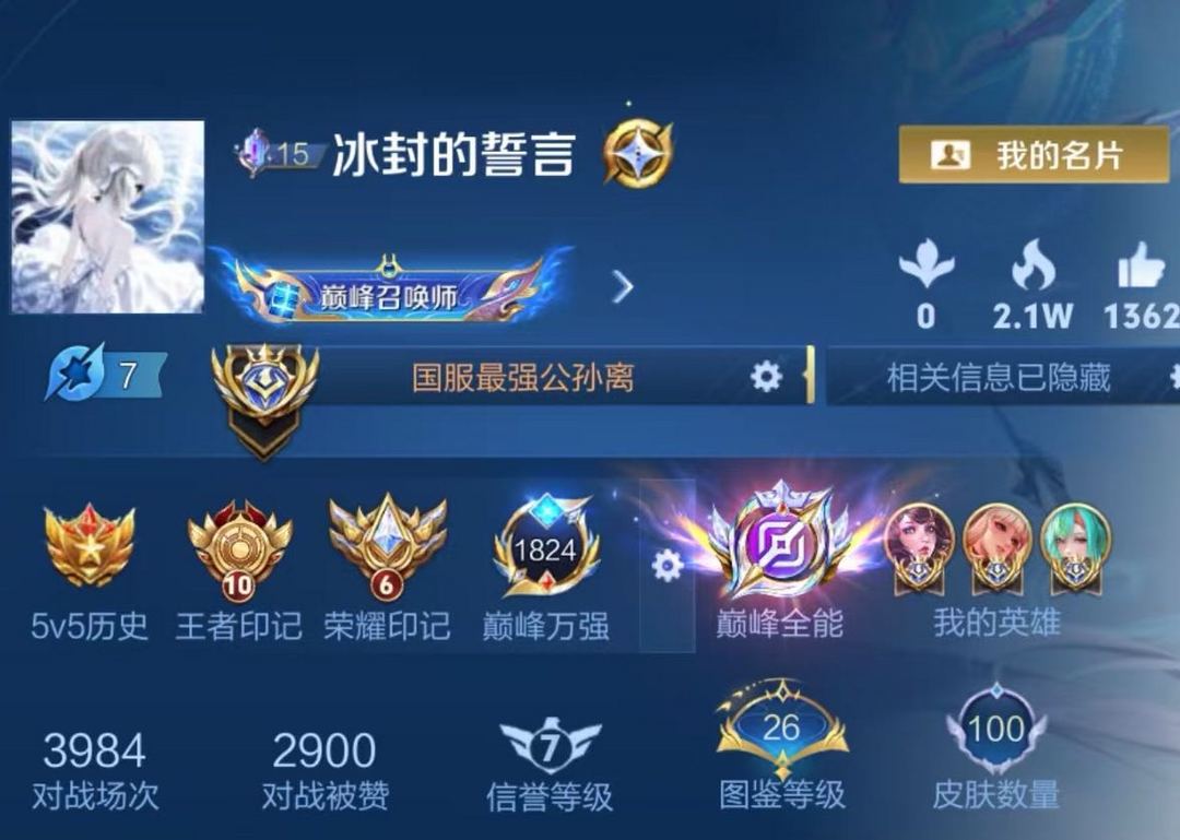 4月抢先在榜五国服公孙离少司缘大乔嫦娥元歌⭐巅峰1824千强框⭐全能百强⭐可排位禁巅峰