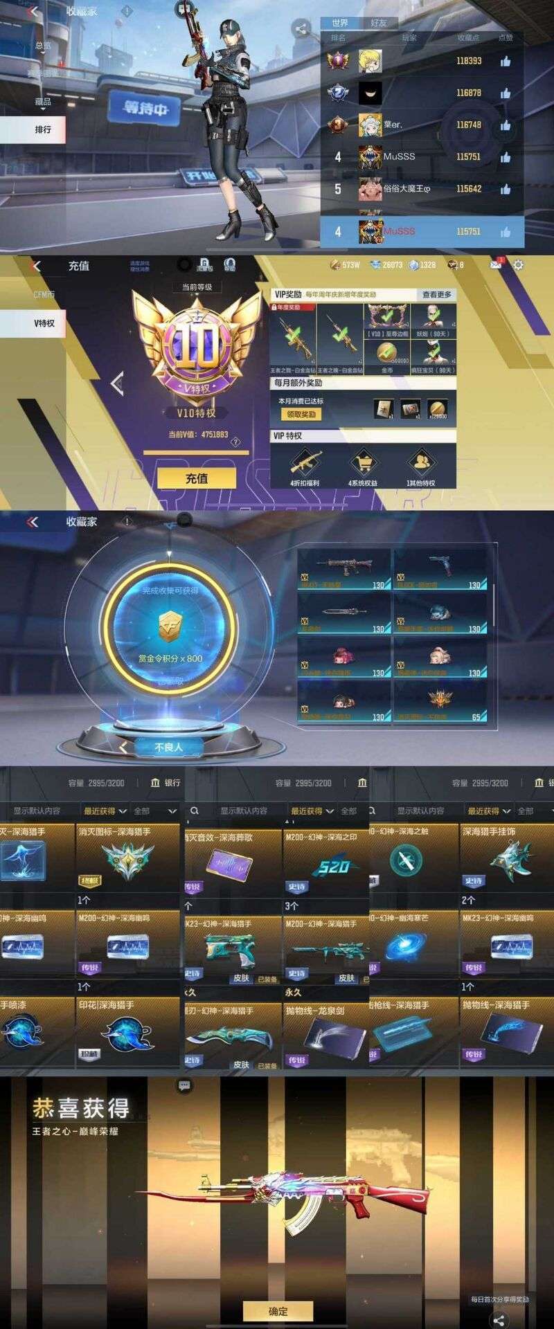 最强CF❤️榜前5❤️五百万V值❤️不良人深海猎手毕业❤️所有活动全拉满❤️全紫电炫金王者三国❤️