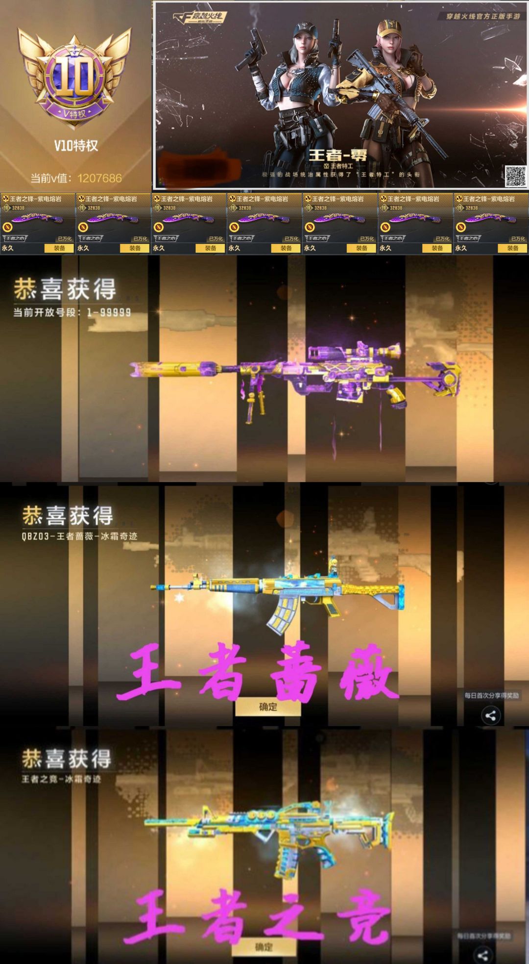 重氪v10♒七紫王锋10紫主武♒紫电王幻冰霜王竞蔷薇王辉王翎♒奉先孙权7cop。
