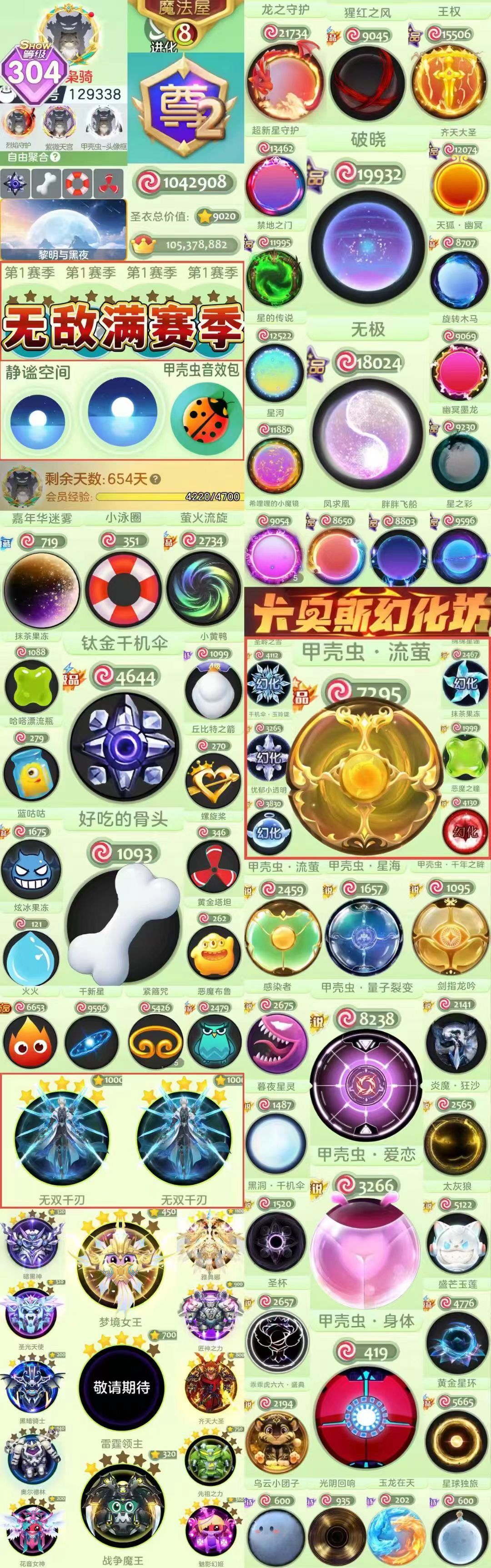 甲壳虫音效*静谧空间双音效*满赛季1.2万排名号年卡/幻化量子高配/幻化十字架漩涡/钛金千机伞老骨头