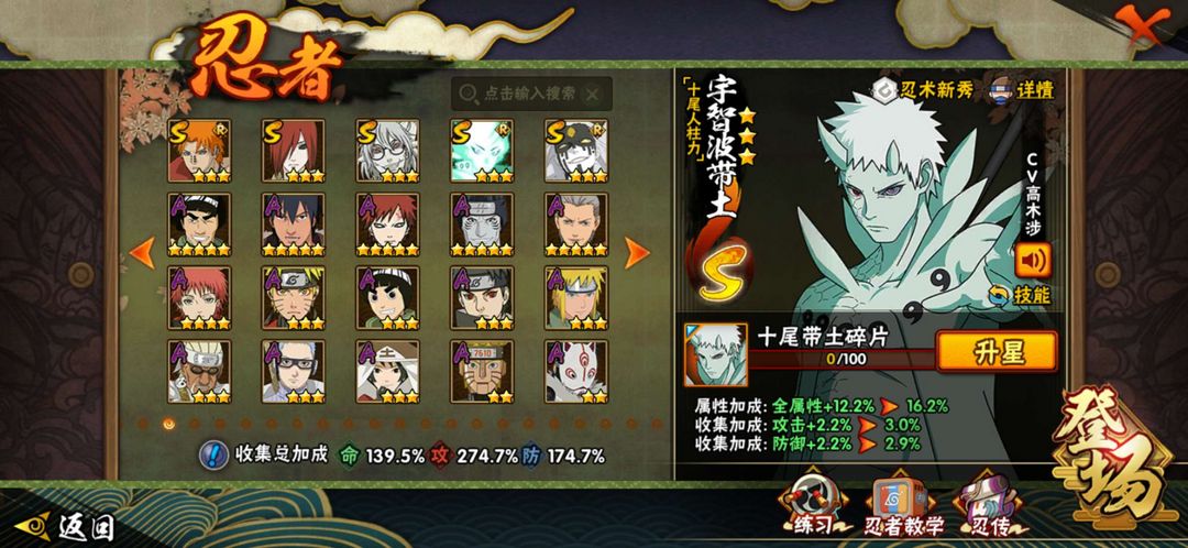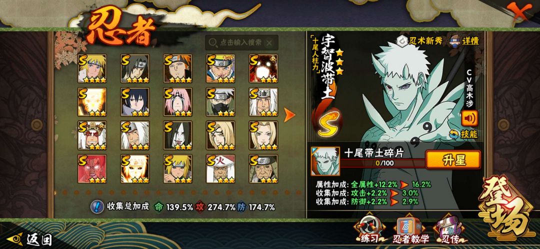 十尾带土45S、70A、348忍、忍战带土、面麻、天道超、鸣人九喇嘛模式