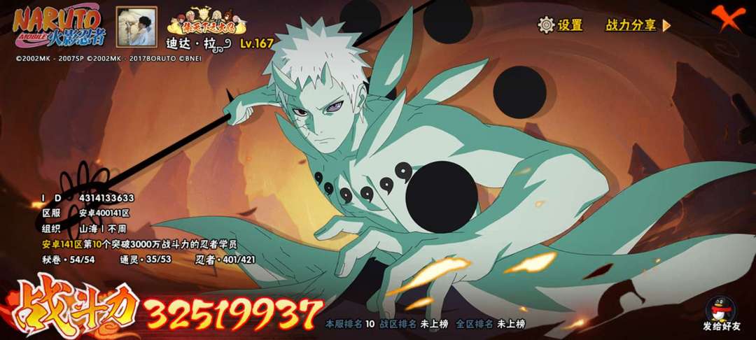 56S,92A 全高招 忍法帖 最新 六道带土 已出 三千一百万战力 鲛肌融合等直购忍者看图