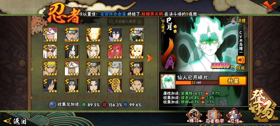 25S,45A,忍战带土,秽土扉间,秽土水门,老三代,等等一大堆好玩忍者。等你来玩哦。详情请看图片。
