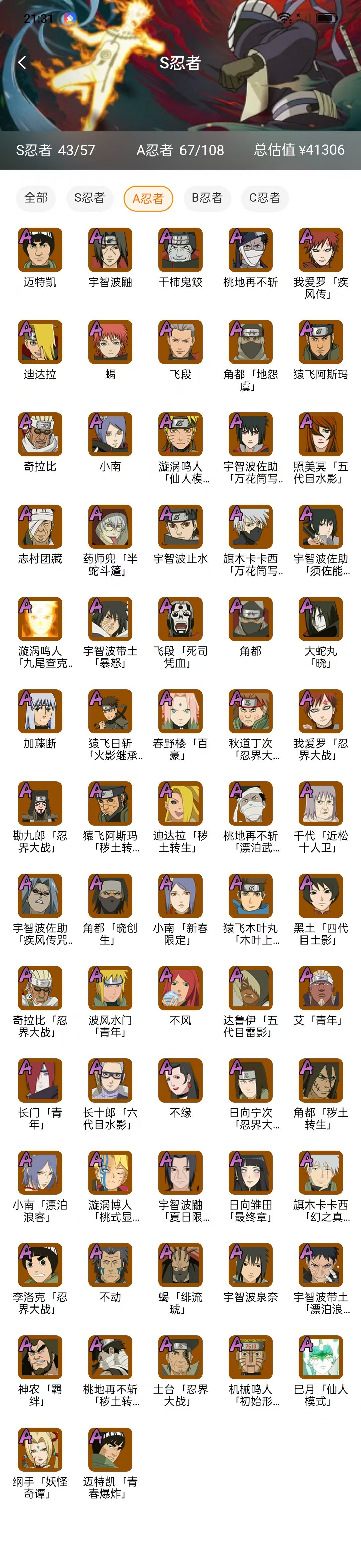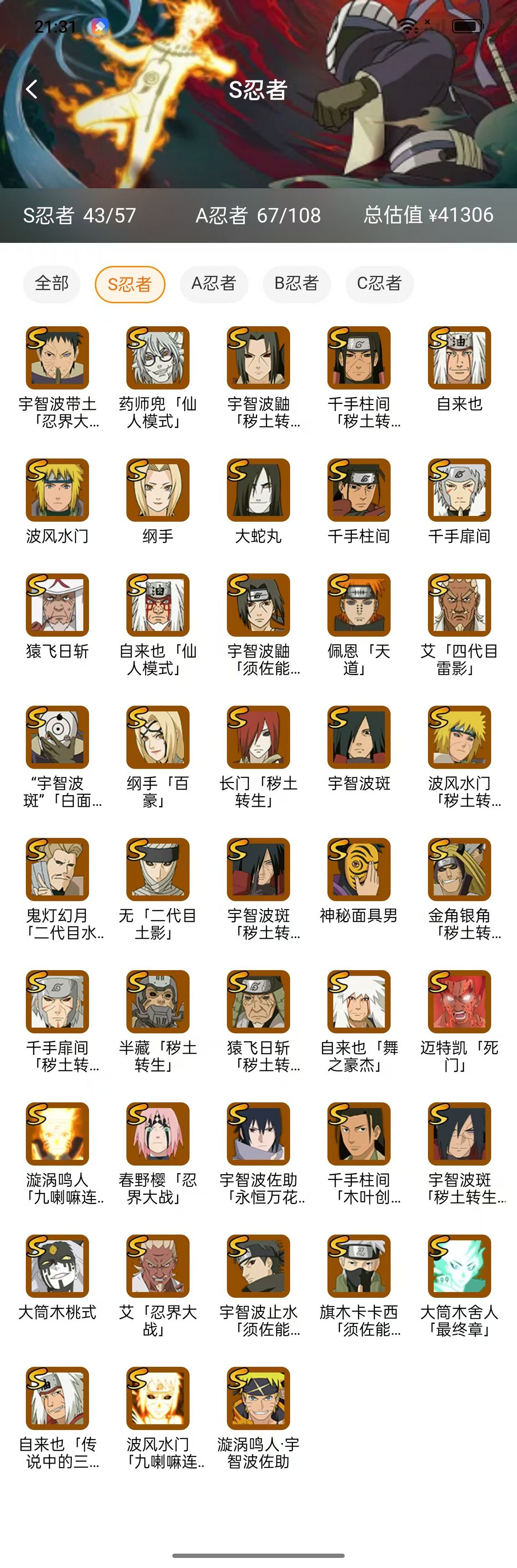 43S❤️舍人❤须佐卡卡西❤九喇嘛水门❤忍战带土❤死门凯❤秽土长门❤