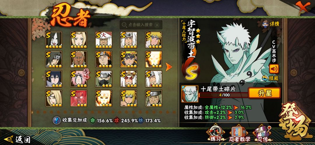 41S十尾带土★★金身水门★三忍自来也★忍战艾 ★秽土解斑2200万战★永恒佐助★忍战樱★九尾鸣人★死门凯★忍战带土★青年水门★秽土柱间★仙人兜★240忍者55A★全密卷★新再不斩★熊猫螃蟹★泳装小南★新春鼬★四尾鸣人★新春水门