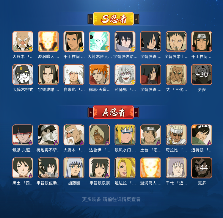 三代目风影 「秽土转生」;大筒木金式;自来也;艾 「忍界大战」;大筒木舍人 「最终章」;宇智波带土 「忍界大战」;宇智波斑 「木叶创立」;迈特凯 「死门」;宇智波止水 「须佐能乎」;宇智波斑 「秽土转生」;鬼灯幻月 「二代目水影」;自来也 「仙人模式」;猿飞日斩;千手扉间 「秽土转生」;大筒木桃式;宇智波斑 「秽土转生·解」;神秘面具男;春野樱 「忍界大战」;千手柱间;药师兜 「仙人模式」;神秘面具男 「红夜之刃」;波风水门 「秽土转生」;千手扉间;旗木卡卡西 「须佐能乎」;纲手 「百豪」;长门 「秽土转生」;大野木 「忍界大战」;佩恩 「天道」;猿飞日斩 「秽土转生」;纲手;艾 「三代目雷影」;大蛇丸;自来也 「舞之豪杰」;千手柱间 「木叶创立」;宇智波佐助 「永恒万花筒」;宇智波斑;“宇智波斑” 「白面具」;波风水门;漩涡鸣人 「九喇嘛连结」;千手柱间 「秽土转生」;宇智波鼬 「秽土转生」