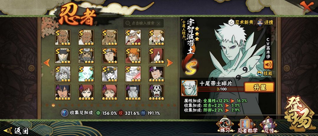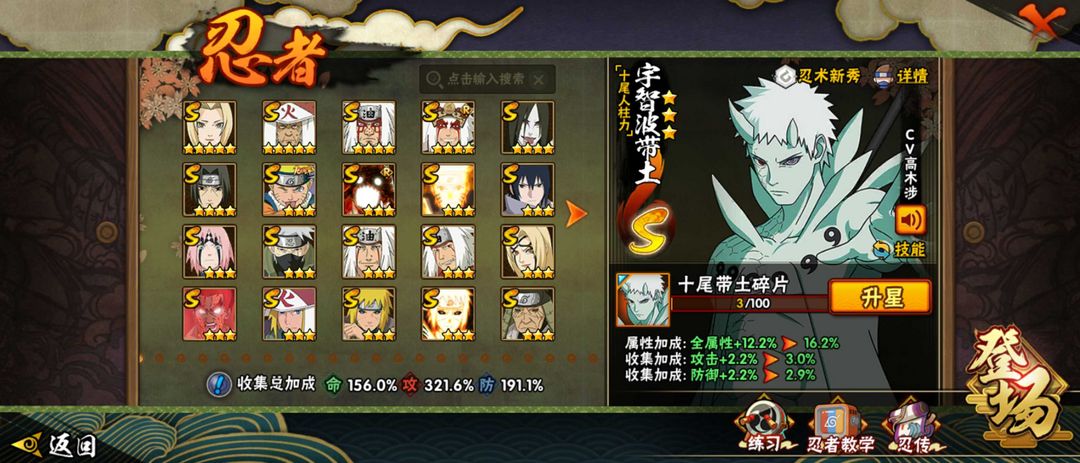 十尾带土⭐380忍者54S 81A⭐五影斑⭐九喇嘛水门⭐烈斗⭐六尾鸣人⭐传说自来也⭐须佐卡卡西⭐