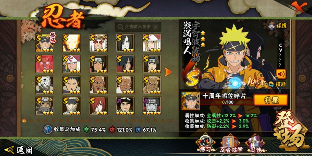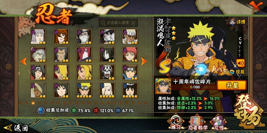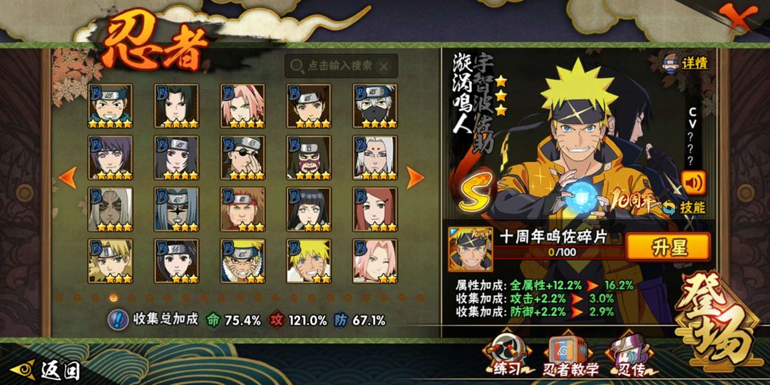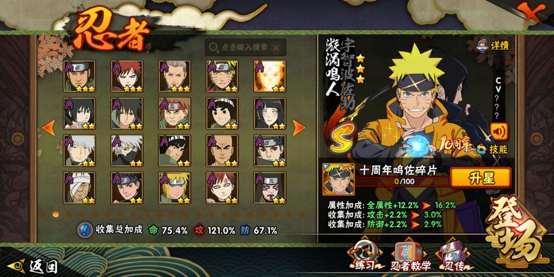 半藏,无,百豪纲手,死门凯,还有一些新s和比较老的娱乐忍者可以玩,还能多玩