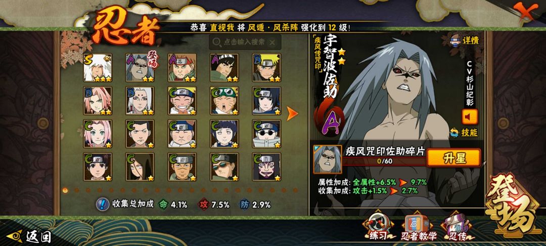 298疾风咒印佐助号 有青春凯和丁次 能打决斗场