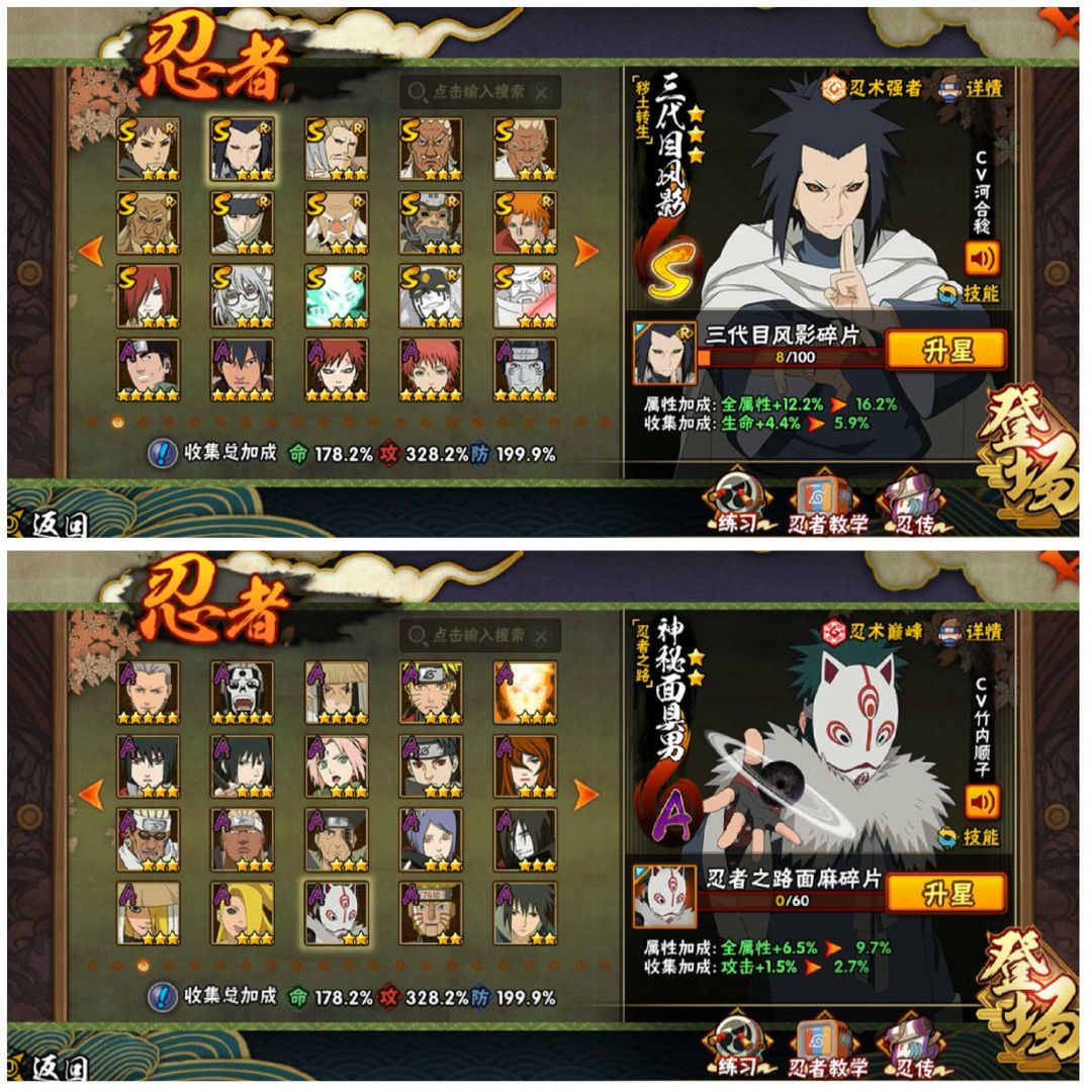 欢迎来到超影租号小店,氪金号助你更轻松战胜对手。有梦想你也许就是火影忍者下个超影♥ 账号如标题。忍者看上图。不要动组织功勋。 3300W+高战号,全部高招、限定347忍。账号可以段位赛。安卓222区。号主不会顶号,如遇顶号,基本为上一租客未退出登录,请重新登录即可。 喜欢的话点收藏。 祝你游戏愉快O∩_∩O毁号行为涉及毁坏虚拟财产罪及计算机安全罪,请文明游戏素质游戏,让我们共建美好租号平台!