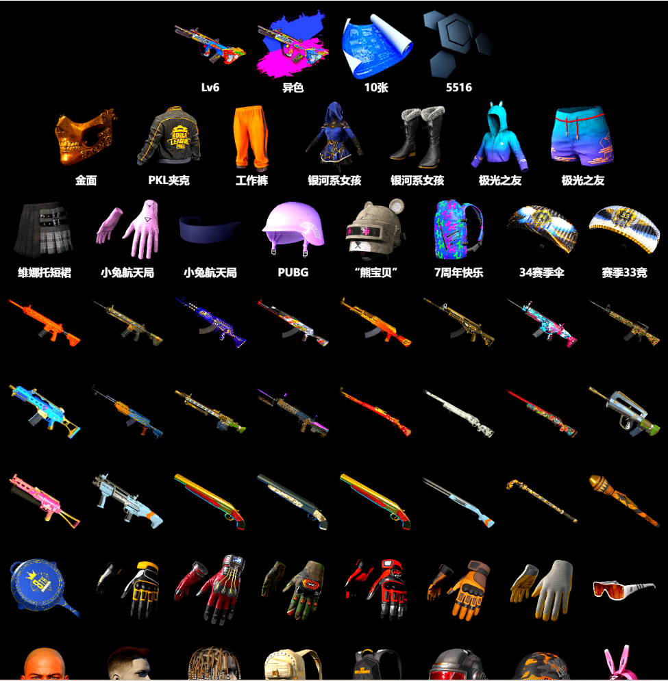 二级密码069621七级异色爆裂弹珠AUG黄金面具湮灭762孙悟空AK鸡斯卡斯嘎熊宝贝头盔