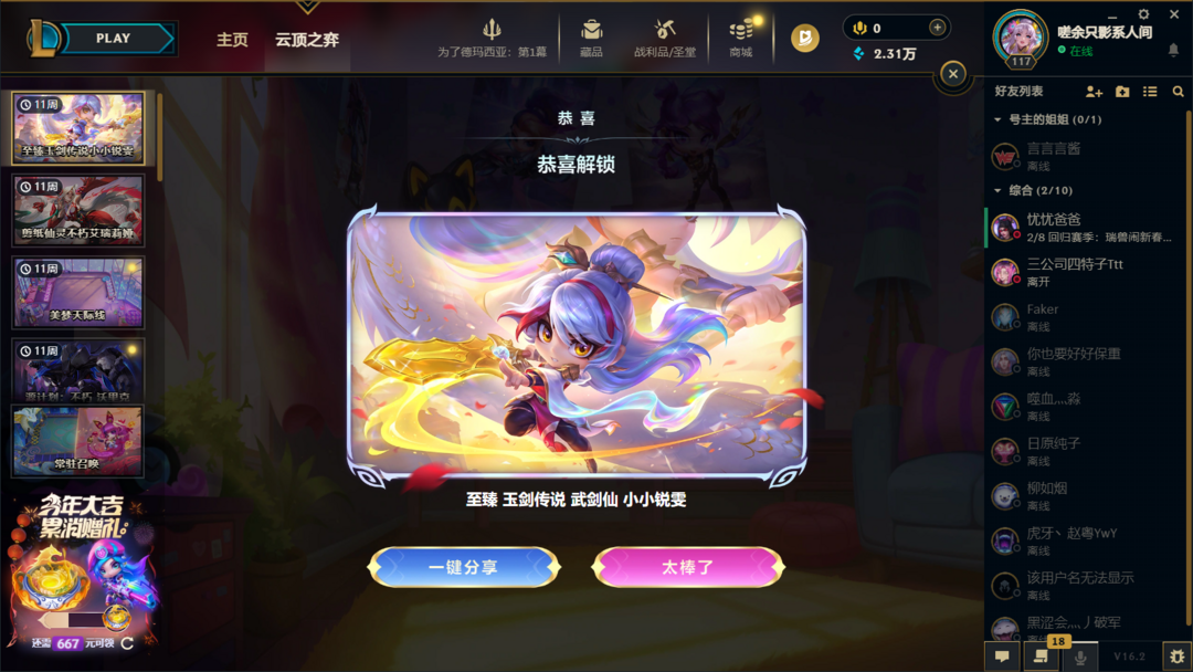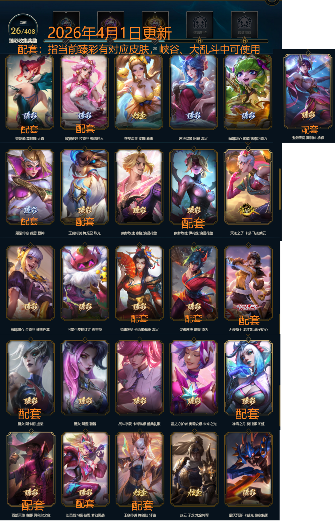2026年4月1日更新此文本。祝大家马年财运亨通!此号全英雄 推荐海克斯大乱斗、云顶之弈(可排位)模式(峡谷无段位慎选)。三至臻小小英雄 其余若干神话级小小英雄。棋盘:水天云池。女玩家首选!若干 配套炫彩臻彩 与 至臻 皮肤适合大乱斗、峡谷(匹配)游玩